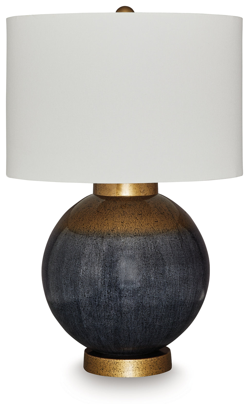 Effortlessly elevate your home's decor with the chic refinement of this table lamp. Its elegant blue and goldtone hues add quiet luxury to your living space, bedroom or office, casting a glow of sophistication and beauty.